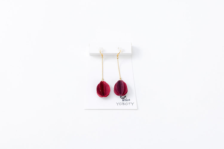 The petals of these featherweight earrings made of washi can be opened or closed depending on the occasion, your outfit, or your mood, making them a highly versatile accessory. As they are made of washi, you can also spray them with your preferred perfume, and the scent will radiate subtly in the wind.
