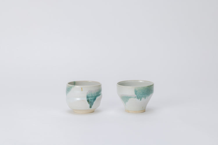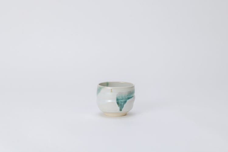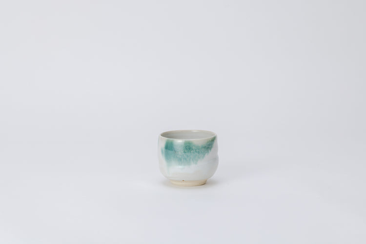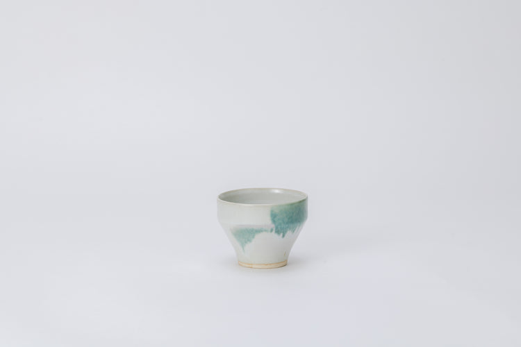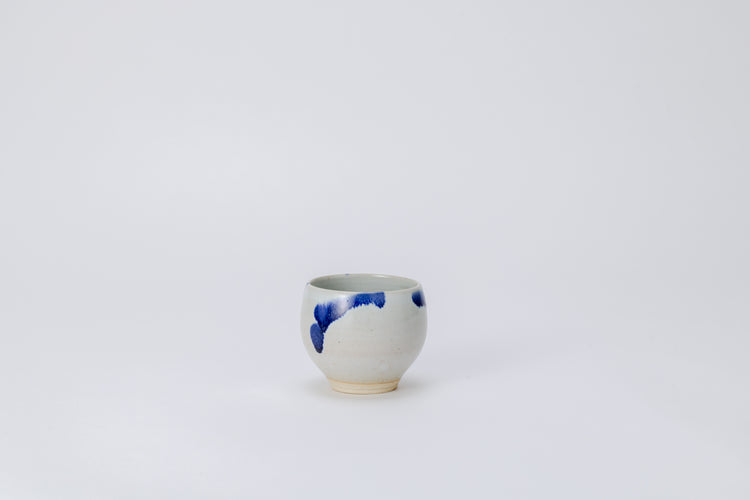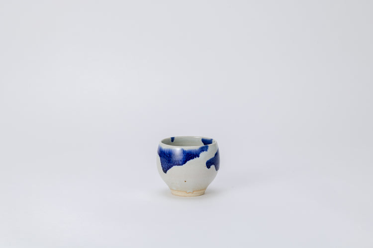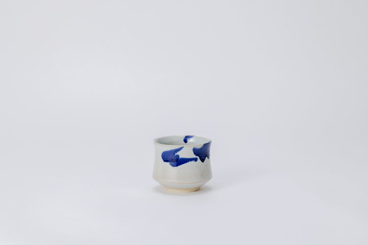 The freecup exhibits the unique design and exceptional artistry of Ando Yuri, a fifth-generation craftsman of Hoshoujiyaki Shokagama. Its azure color is achieved through the drizzling technique, and the glaze's brightness varies depending on the base shade. The cup is perfect for drinks and also works well for serving small appetizers.