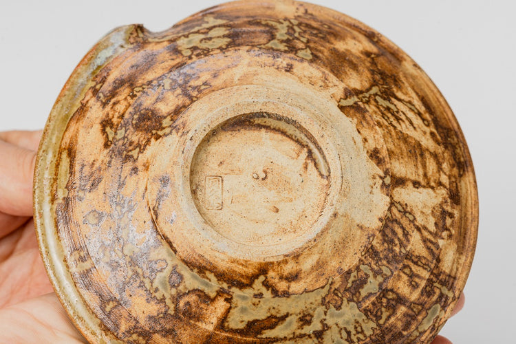The history of Inkyuuzan-yaki dates back more than 300 years, to the days of the Edo Period when this region was ruled by the Tottori Clan. The Inkyuuzan-yaki kiln was the official kiln of the clan, producing pottery exclusively for use within the castle or for gifts. Inkyuuzan-yaki adheres to tradition to this day, using local clay harvested in the neighborhood, straw ash, and ash glaze made from the ashes of trees, with vessels hand-thrown on a heavy, old-fashioned wheel, and and wood-fired for roughly 50 hours in Inkyuuzan-yaki’s impressive wood-fired climbing kiln.