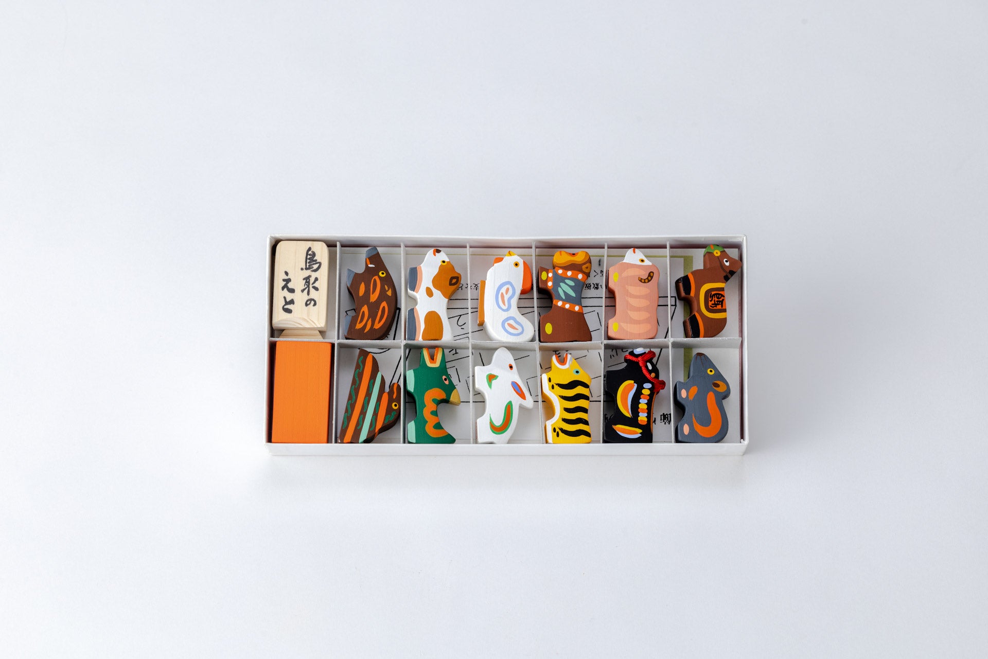 Shinobu Kogeiten is located near Kannon-in, a Buddhist temple well-known for its Japanese garden, and is a nationally-designated Special Place of Scenic Beauty. Here, they produce toys based on local culture and folklore, such as Tottori’s black, Inabagyu cattle (famous for Wagyu beef), and nagashibina dolls, based on the local custom of floating traditional hina dolls down the river to ward off misfortune. Particularly noteworthy are the Tottori eto toys. These are wooden toys based on the twelve animals of the Japanese zodiac associated with Tottori Prefecture, such as the Inabagyu and the Inaba white hare.