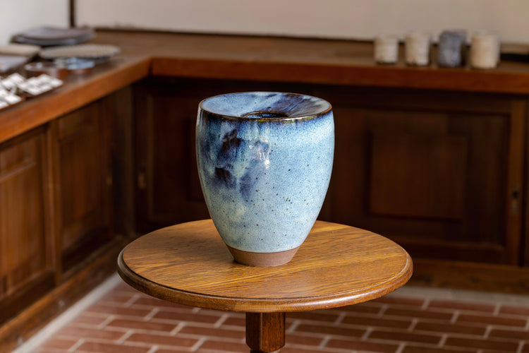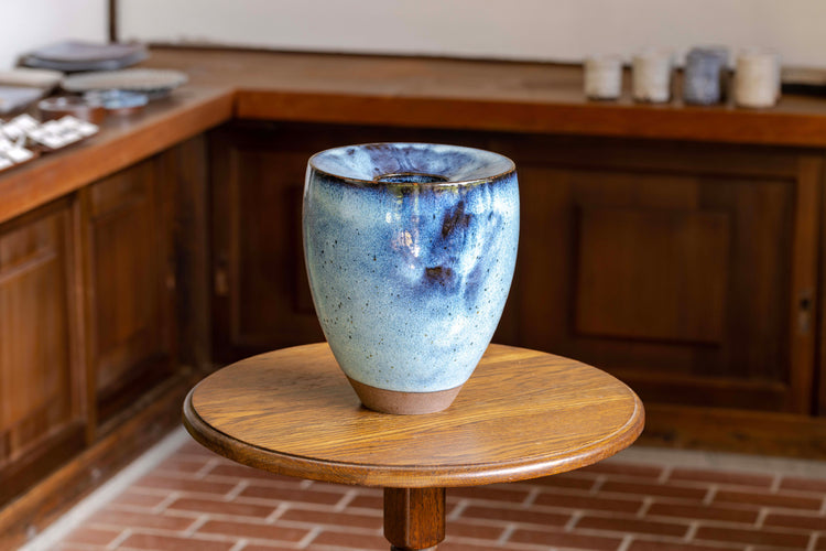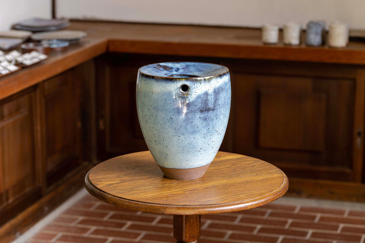 The multi-dimensional blue of namako glaze is stunning in this unique mizusashi, or water container for tea ceremony, by Aoi Watanabe.