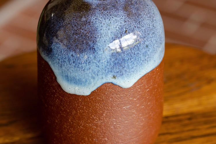 The multi-dimensional blue of namako glaze is even more stunning against the warmth of earthy, doro glaze in this unique vase by Toshiharu Watanabe.
