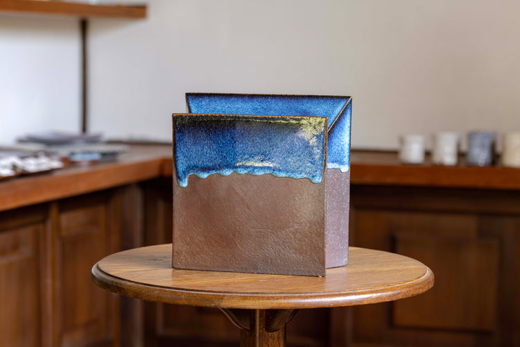 This sculptural vase is an excellent example of ToshiharuWatanabe's distinct style which incorporates traditional Shiraiwa-yaki with elements of contemporary sculpture.