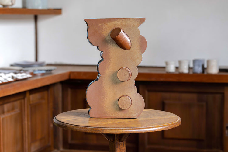 This sculptural vase is an excellent example of Toshiharu Watanabe's distinct style which incorporates traditional Shiraiwa-yaki with elements of contemporary sculpture.