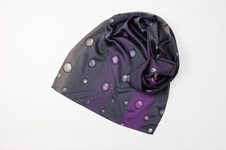 This one-of-a-kind scarf is meticulously hand-dyed by skilled artisans using persimmon tannin and pigments. Crafted with persimmon tannin liquid made from Saijo persimmons grown in Yazu Town, Tottori Prefecture, each scarf features layers of color that create a rich and nuanced hue. The dyeing process is done entirely by hand, with great care and attention to detail, resulting in a truly unique piece.