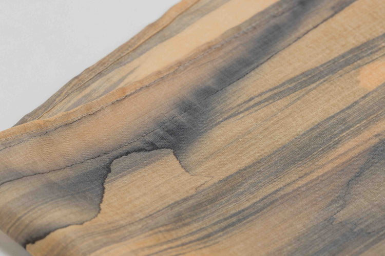 A one-of-a-kind snood, meticulously hand-dyed by skilled artisans using persimmon tannin and pigments. Crafted with persimmon tannin liquid made from Saijo persimmons grown in Yazu Town, Tottori Prefecture, each snood displays layers of color that create a rich and nuanced hue. The dyeing process is done entirely by hand, with great care and attention to detail, resulting in a truly unique piece.