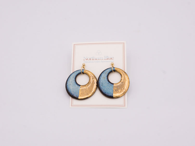 A light, comfortable, and versatile pair of earrings made from traditional Shiraiwa-yaki pottery. A lustrous blue glaze is reministcent of the long-awaited spring thaw in Akita Prefecture, the home of this pottery tradition.