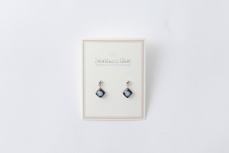 A light, comfortable, and versatile pair of earrings made from traditional Shiraiwa-yaki pottery. The titanium chain gives a subtle sense of movment. A lustrous blue glaze is reministcent of the long-awaited spring thaw in Akita Prefecture, the home of this pottery tradition.