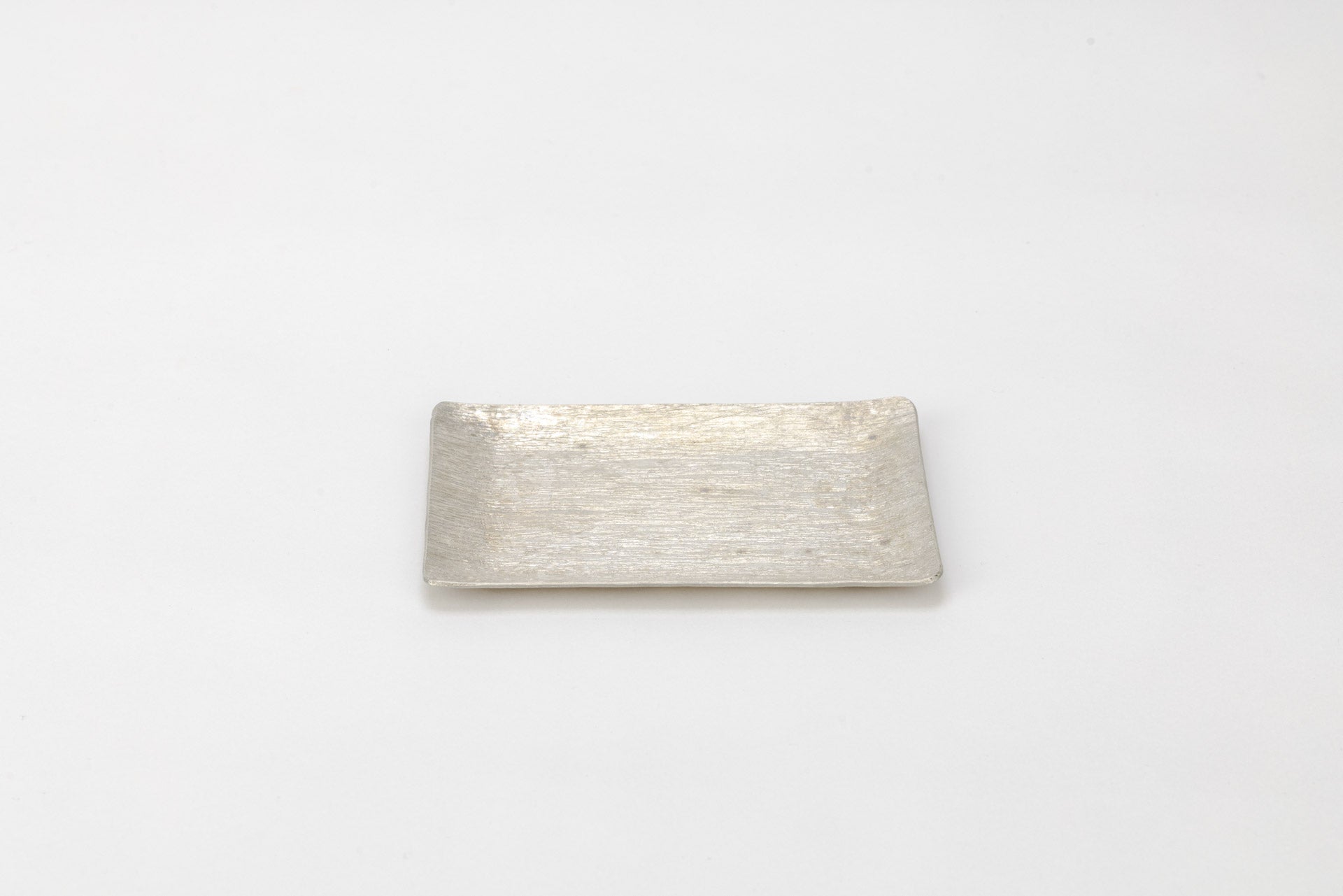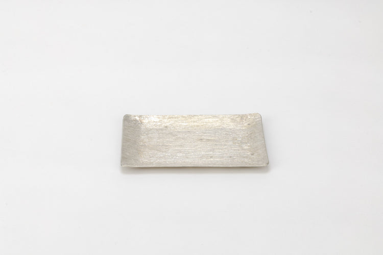 This plate, made of 100% pure tin, is hand-hammered, creating an attractive, slightly irregular shape. Its organically-textured surface is created with washi paper during the casting and forming process.