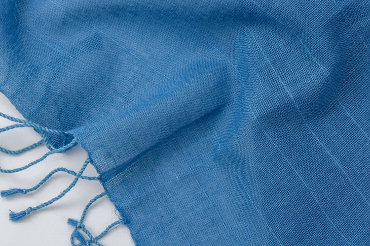 The clear indigo color of this stole is achieved thanks to pristine water, rich forests, and home-made natural dyes made from plants nurtured from seeds. The gauze fabric is dyed to give it a pleasant feel against the skin.