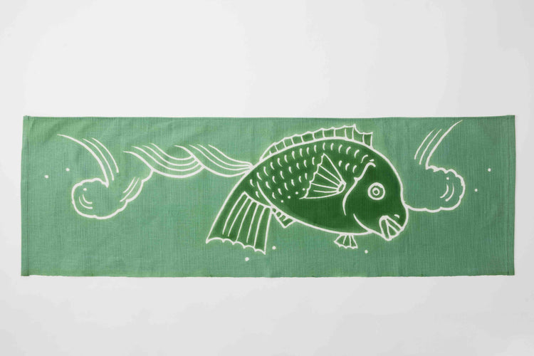 Using the traditional tsutsugaki technique, each table runner is one-of-a-kind. From dyeing to finishing, everything is crafted in-house at Matsuda Dyeing Studio. The vibrant, colorful patterns, characteristic of tsutsugaki, add a unique touch of artistry to your table setting.