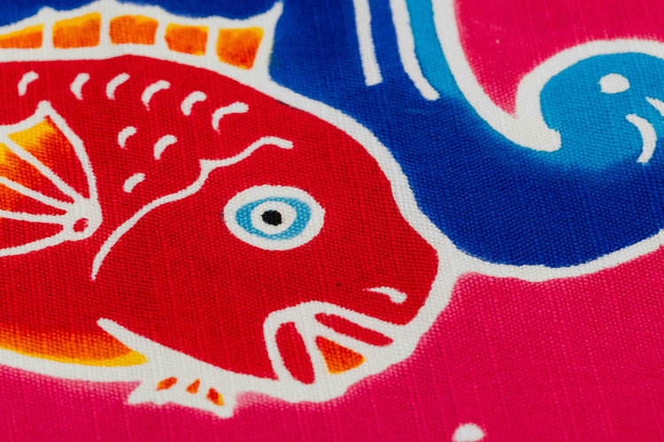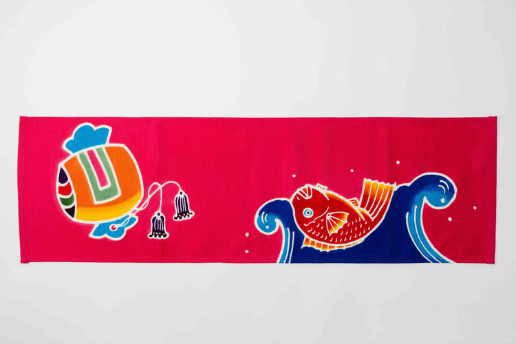 Using the traditional tsutsugaki technique, each table runner is one-of-a-kind. From dyeing to finishing, everything is crafted in-house at Matsuda Dyeing Studio. The vibrant, colorful patterns, characteristic of tsutsugaki, add a unique touch of artistry to your table setting.