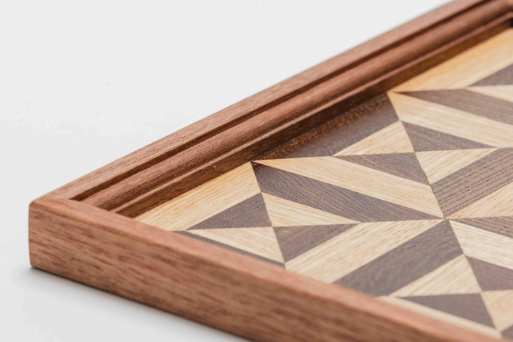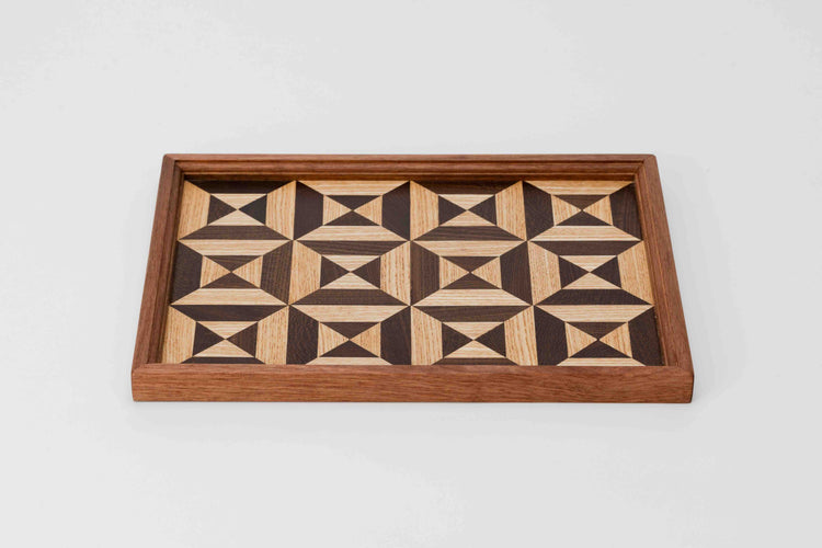 Crafted using the traditional Yosegi Zaiku technique, this tray showcases intricate patterns made by combining different types of wood in their natural colors. Each tray is a one-of-a-kind piece, highlighting the unique beauty and warmth of solid wood. Due to the use of natural wood, slight variations in color may occur, adding to its charm.