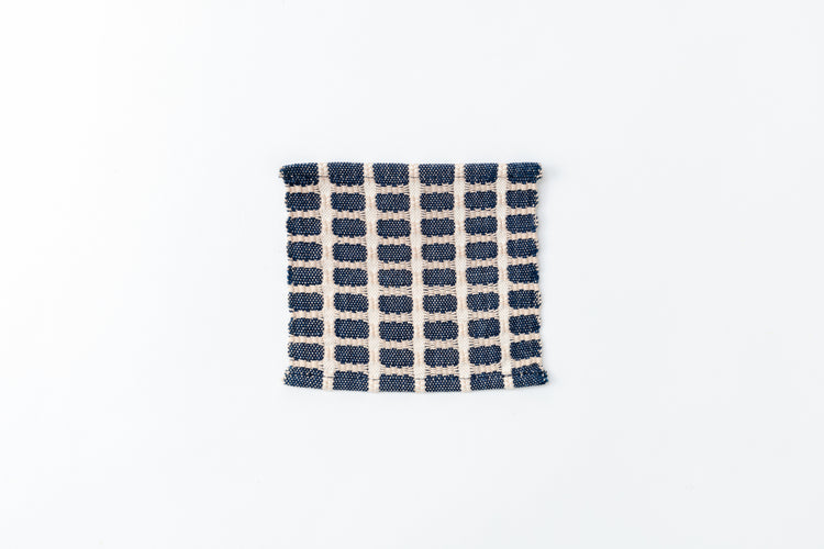 Yoshino-ori is a weaving style combining plain weave and aze weave techniques. Aze refers to the raised ridges between rice fields, which are expressed in the pattern of this coaster. Hand woven with plant-dyed cotton threads.