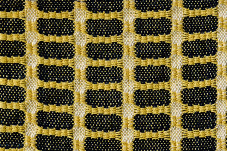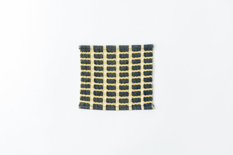 Yoshino-ori is a weaving style combining plain weave and aze weave techniques. Aze refers to the raised ridges between rice fields, which are expressed in the pattern of this coaster. Hand woven with plant-dyed cotton threads.