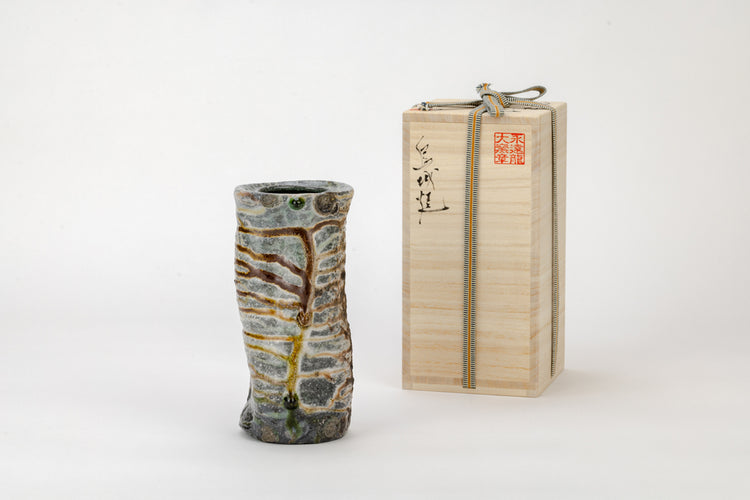 Tsugaru Ujo-yaki Natural Ash Glaze Cylindrical Hanaike [CHI-02]