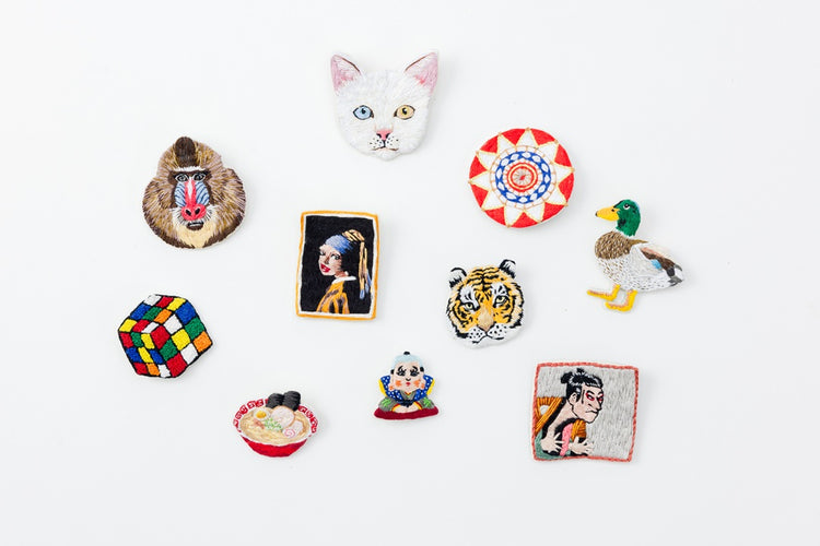 A brooch with a modern and charming presence that honors traditional motifs, bringing a refreshing accent to your attire. Each of these hand-embroidered pieces is meticulously crafted by yamanitori, an embroidery artist based in Tottori.