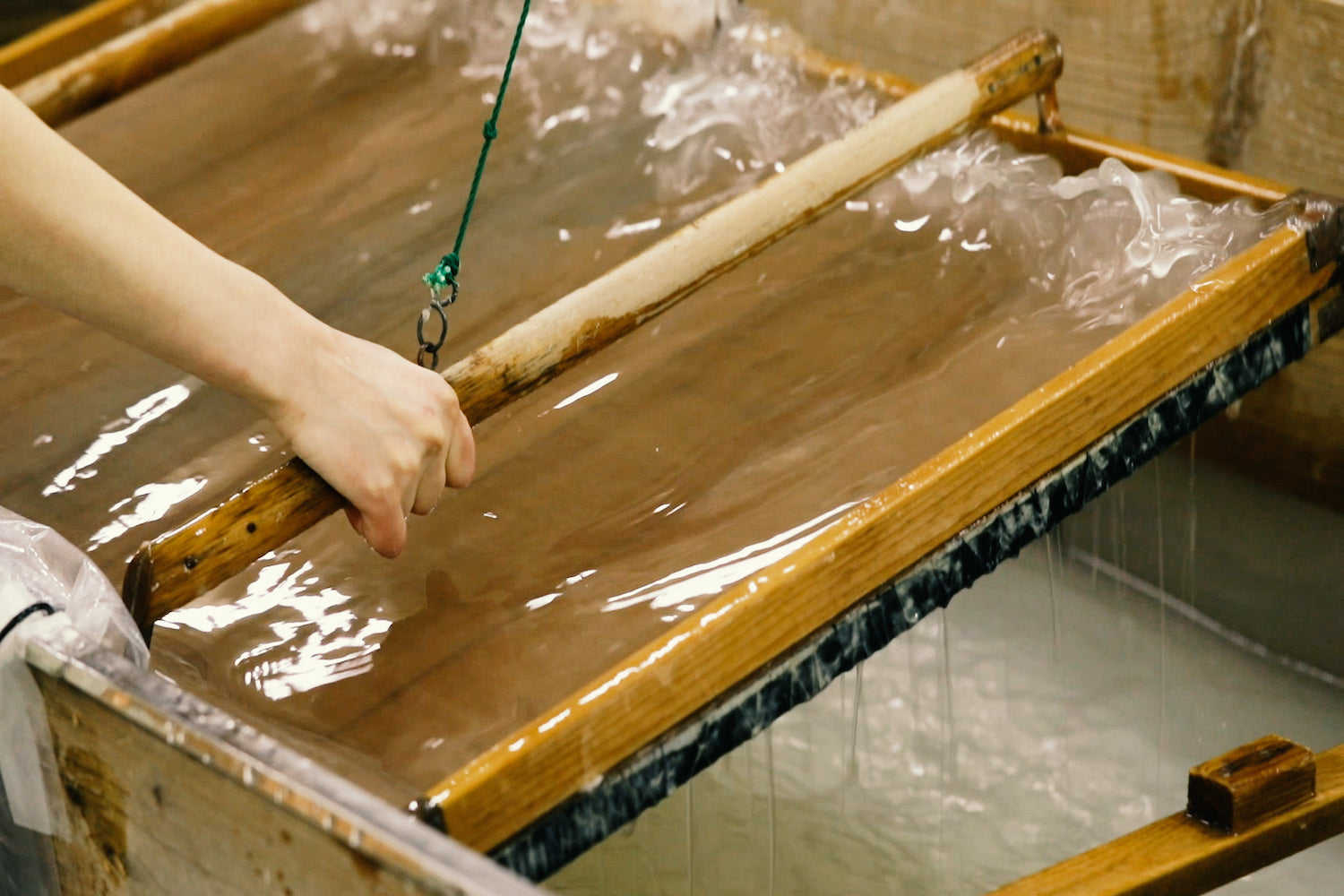 Sajiwashi was established in 1995 to help invigorate the washi industry and preserve and pass down the centuries-old techniques of the craft. Here, various types of washi, including calligraphy washi (gassen-shi, han-shi), decorative washi for artwork, and dyed washi are all made manually using traditional techniques. Sajiwashi continues to further the applications for washi by developing new products while honoring the traditions of the craft, allowing its 1200-year-old-techniques to be passed down to the next generation, and furthering washi’s many uses in contemporary life.