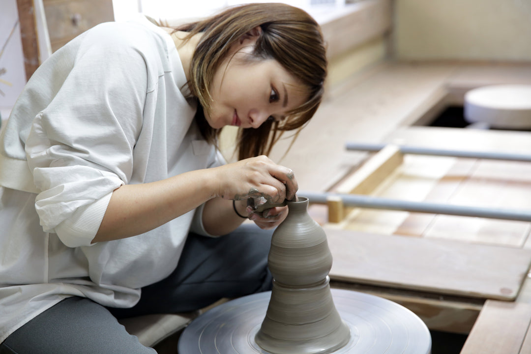Shokagama was built in 1903, its climbing kiln constructed up the slope of the mountain, with materials such as clay and glaze collected from the local area. Today, the local clay is mixed with other clays to help preserve the deposits. Ando creates pottery with Shokagama's time-old techniques of clay-mixing, glaze-making, turning, and rokuro which she learned from her father, while incorporating her training in Nara and Shiga to create her own original works.