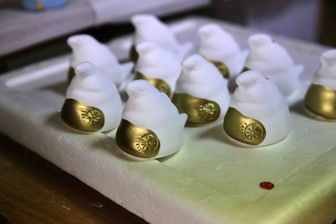 Wakasaka-yaki studio has been producing charming clay bells (Dorei) for over half a century. When gently shaken, these unglazed bells emit a soft, soothing "karakoro" sound. Historically in Japan, clay bells have been made as talismans to ward off evil spirits through their sound. Eiji Otsubo handles the entire process—from design and molding to firing and painting. His clay bells take inspiration from popular Japanese motifs such as Hina dolls, zodiac animals, and the traditional culture of Tottori.