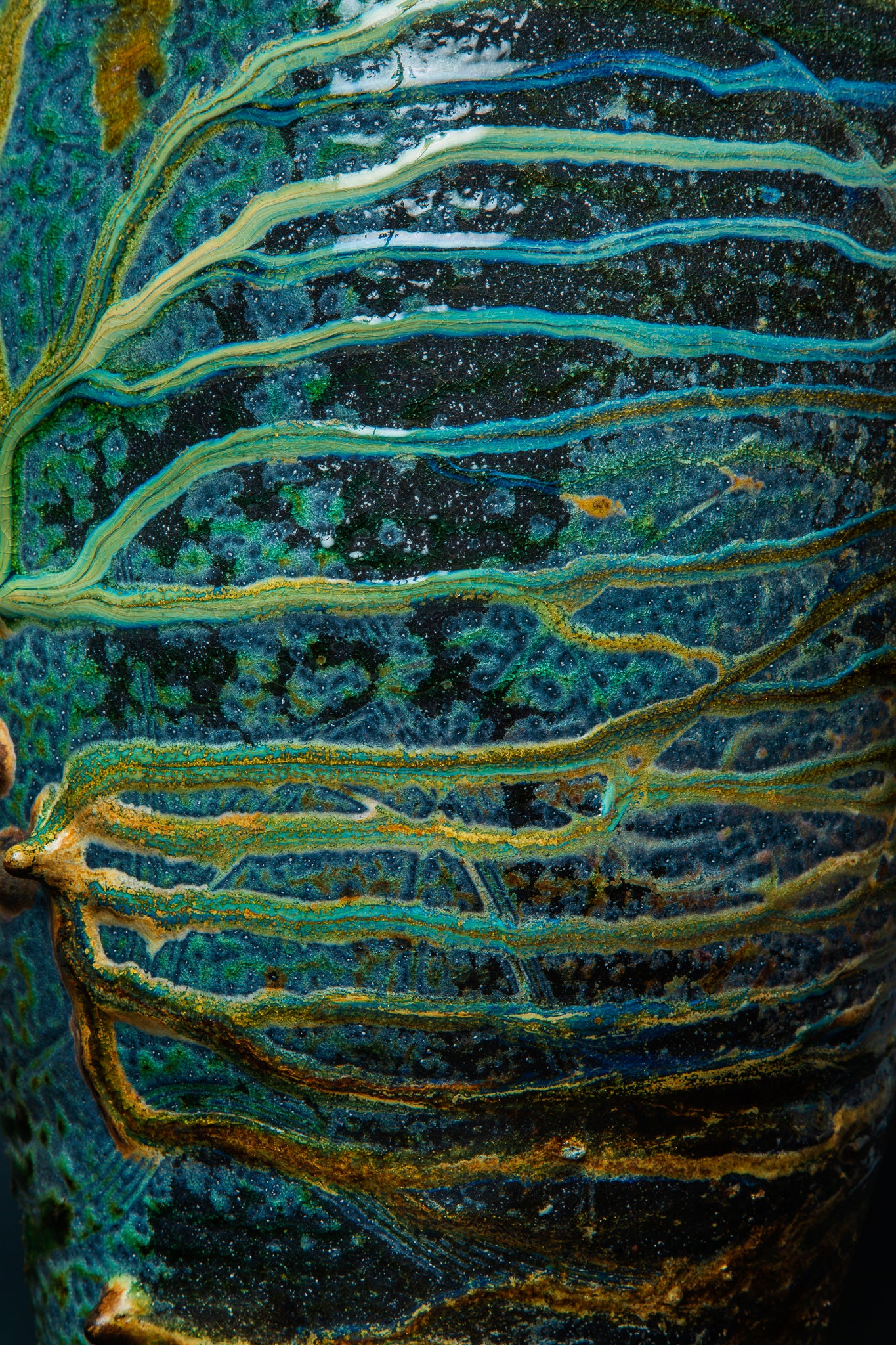 This one-of-a-kind Tsugaru Ujo-yaki vase is a work of art when seen from any angle. Fired in the world's longest kiln, vessels are glazed naturally by layers of red-pine ash falling and melting onto them like snow.