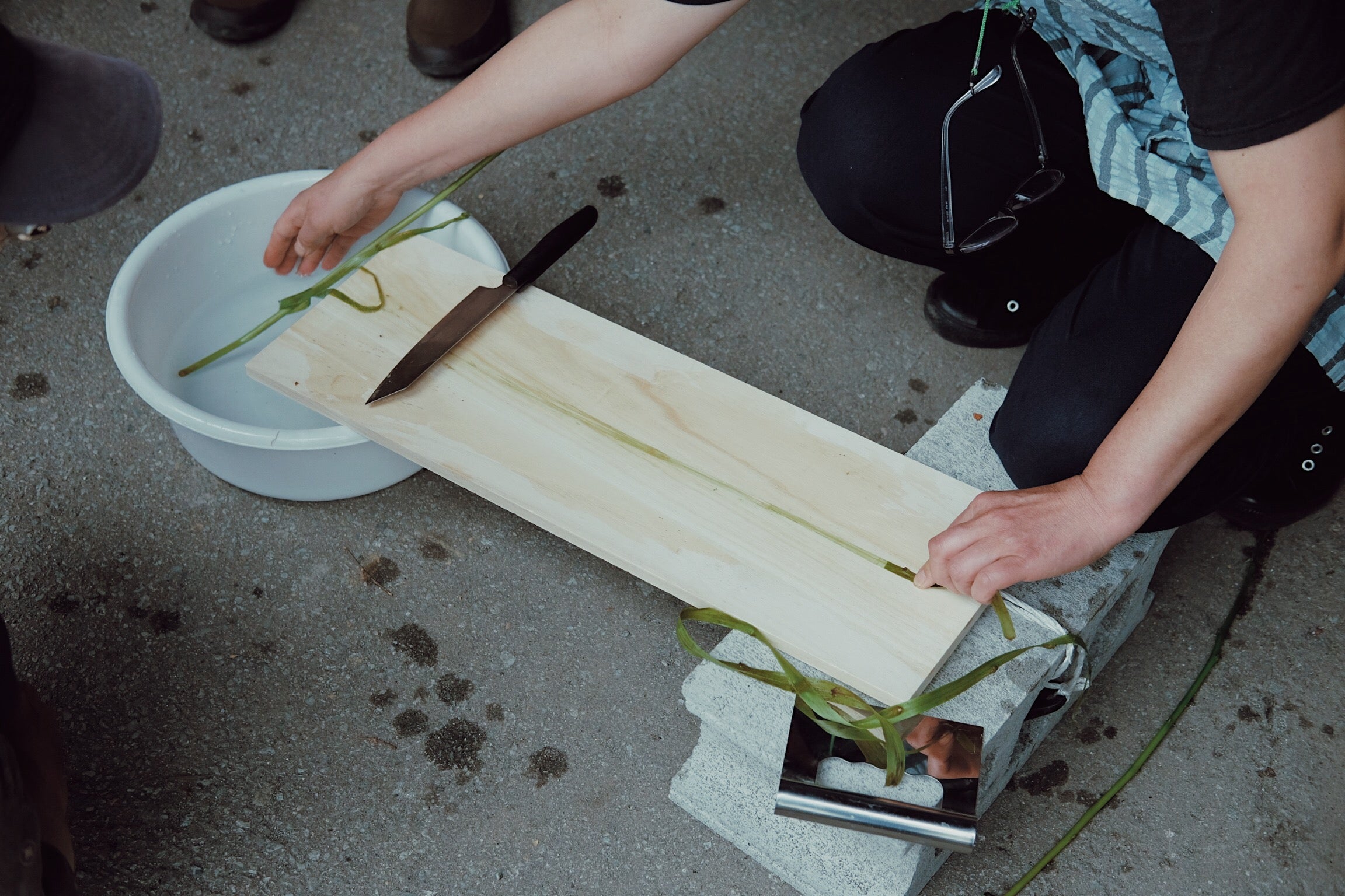 Their work encompasses traditional silk harvesting, native plant fiber harvesting, spinning, dyeing, and weaving. They also facilitate workshops in which they teach textile making from start to finish, beginning with harvesting the natural materials such as silk cocoons and plants, to processing them into fibers, dying the threads, and weaving textiles with them.