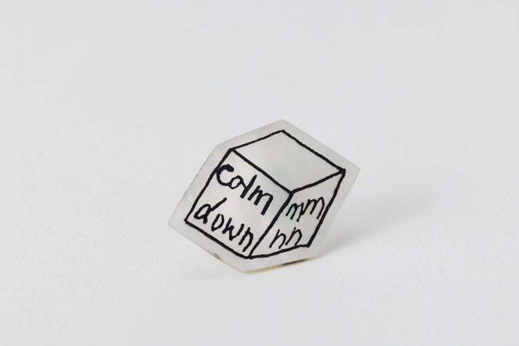 Calmmm downnn’ is crafted using traditional raden line-carving techniques, patiently hand-drawn and pulled into fine lines. The grooves are filled with lacquer mixed with mineral pigments, allowing color to settle gently into each trace. Precision is set aside in favor of playful, handwritten lettering that embraces humor. Through slightly roughened lines and softened color, the work invites everyday moments to pause—reminding us to freezeeeee, just for a bit.
